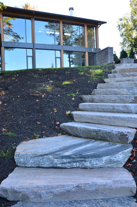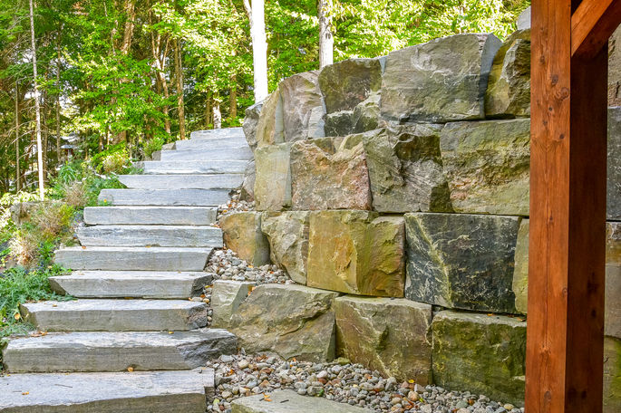 Our stone steps from the Highway 60 Quarry offer a perfect balance of strength, structure, and natural beauty. With warm, earthy tones and a consistent finish, these steps are designed for seamless integration into a variety of landscapes. Ideal for front entrances, garden pathways, lakeside access, or multi-level yards, each piece is precision-cut for a clean, stable step with timeless appeal. Built from durable Muskoka granite, these steps provide both function and lasting style in any outdoor setting.